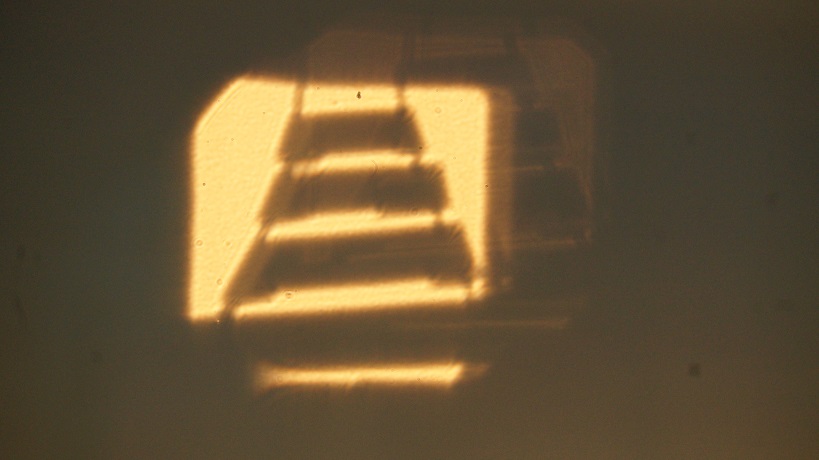 Today’s prompt inspired a new bokeh filter and photography project. I used wire and tape to create “tracks” on a square-cut bokeh filter. Then I put lights over paintings in my office to put those tracks into and through spaces where no tracks had been before.