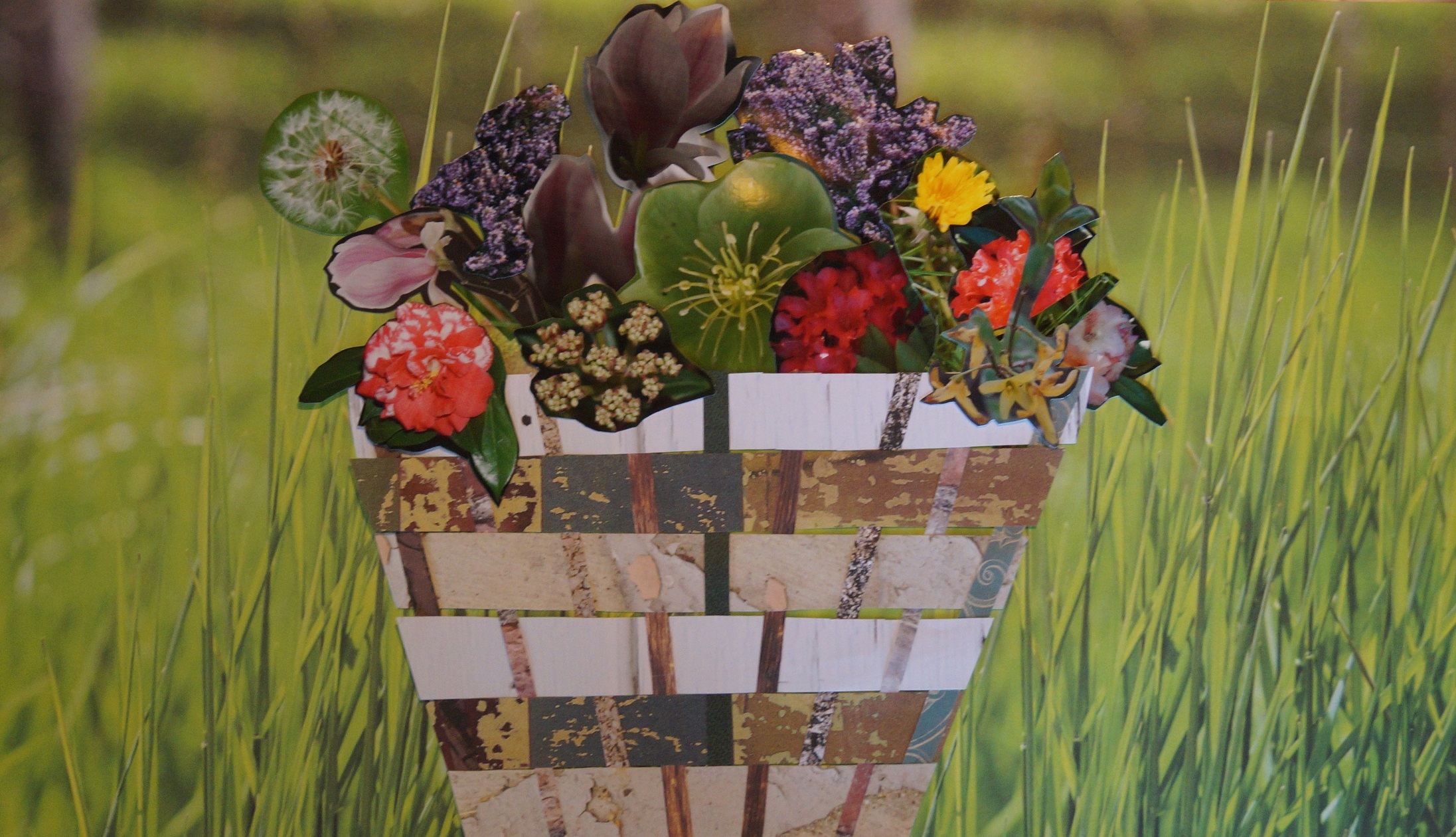 Flower Basket (2020) multi-media collage by Maria L. Berg