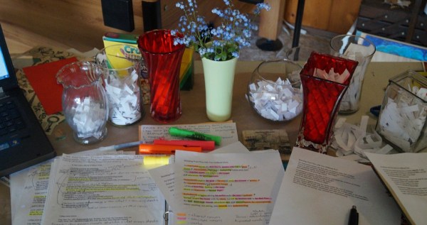 I found this great article by Suzanne Langlois: Poetry Revision Bingo, and designed a bingo card for myself with my redrafting techniques in the squares.