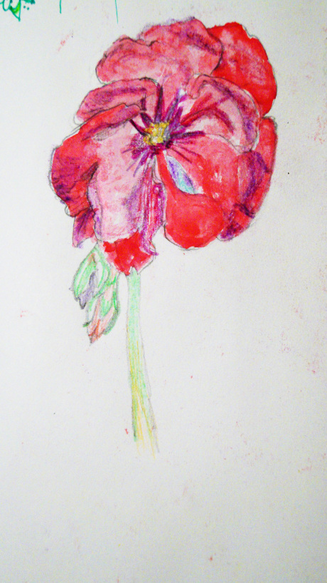 For today’s drawing I used pencil, colored pencil, watercolor and crayon.
