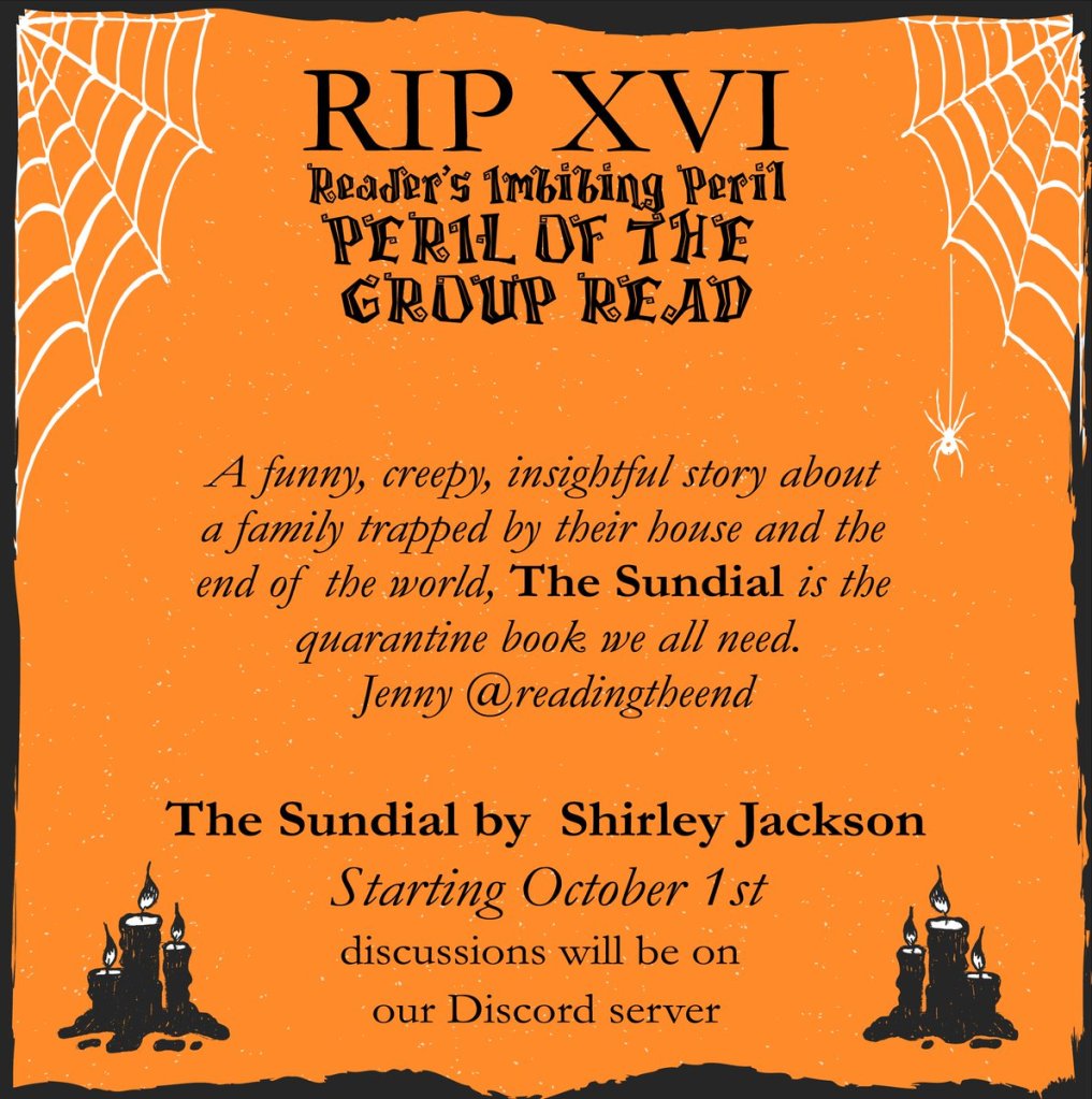 I got in the Halloween spirit a little early this year. Yesterday, I was tweeting about Readers Imbibing Peril. It starts the first of September, but I always forget until October. So in one way I’m early by only starting a couple weeks late. This year’s group book is The Sundial by Shirley Jackson. I started reading it just after watching the first episode of the new season of Slasher and something was oddly familiar. I think I’ll finish the book and then see if Slasher really is mangling it. I haven’t picked any other scary books to read this season yet, but I do have a bunch of thrillers on my kindle. Readers Imbibing Peril also has a fun photo challenge this year and a BINGO card. Oh, so much Halloween fun!