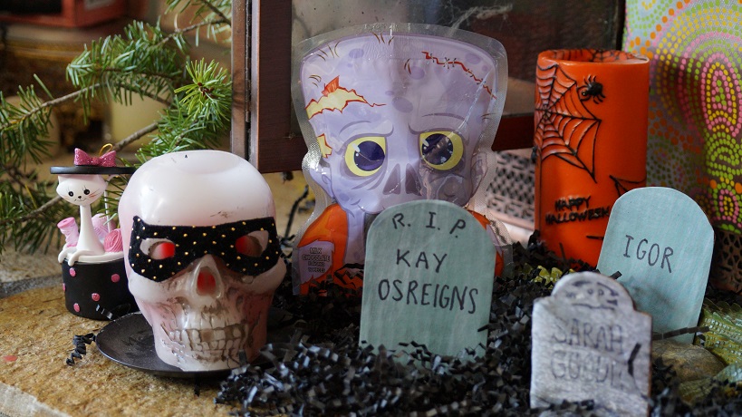 For Tourmaline .’s Halloween Challenge, party, I made two different balloon filters. Then I made a vampire face on my single balloon. My world is a party because the sun came out, and my decorations get to go outside!