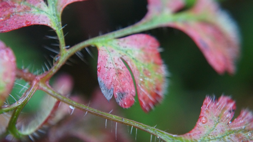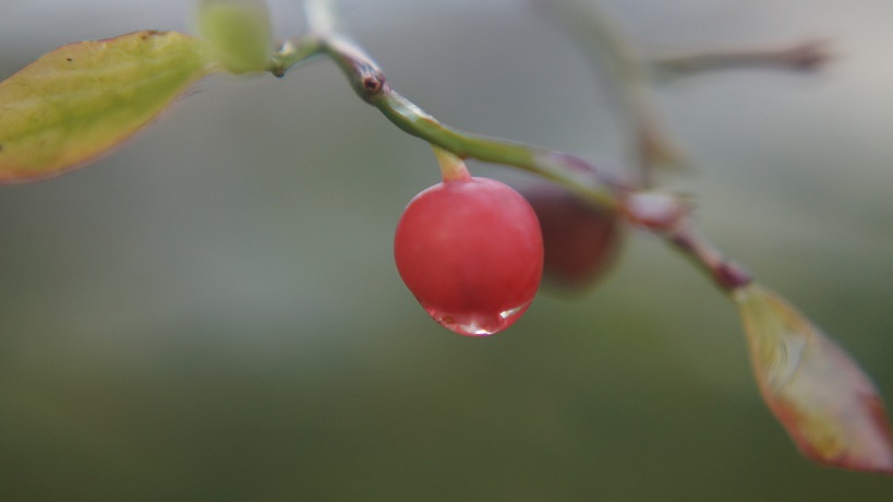 The world was very cooperative. It temporarily stopped raining and a little morning sun peeked out from the clouds occasionally. The leaves held lovely droplets. I was hoping to find one little shriveled up huckleberry clinging to the tree, but instead found many tiny huckleberries hanging on. They were delicious crispy, juicy treats. What a nice surprised.