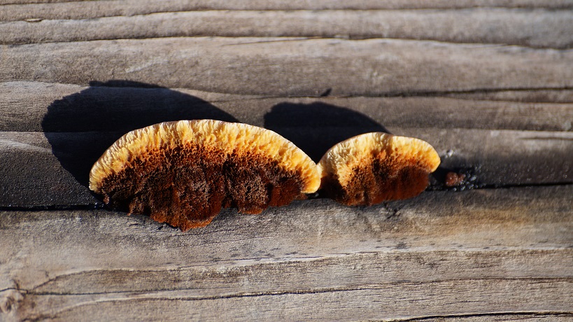 By then the sun had come out and I went out to enjoy it and saw those adorable little fungi growing out of the dock. They looked so out of place, they looked lost. Thus I ran back in and got the camera and my photographic challenge took a new turn.
