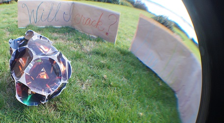 Today, I finally got to another process I’ve had in mind. I used “crack” to come up with some Yes or No questions for my Oracle, and wrote the questions with oil pastels on butcher paper. It was sunny, so I thought I’d try my concept outside before putting it in the mirror world.