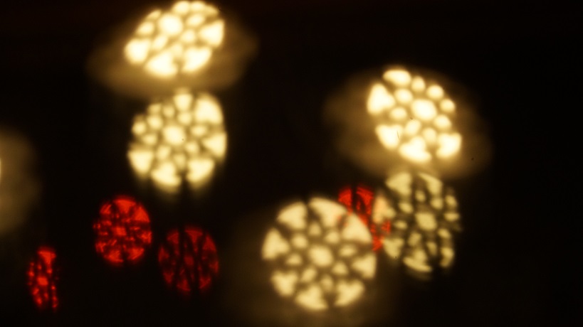 breaking through the thick gray.