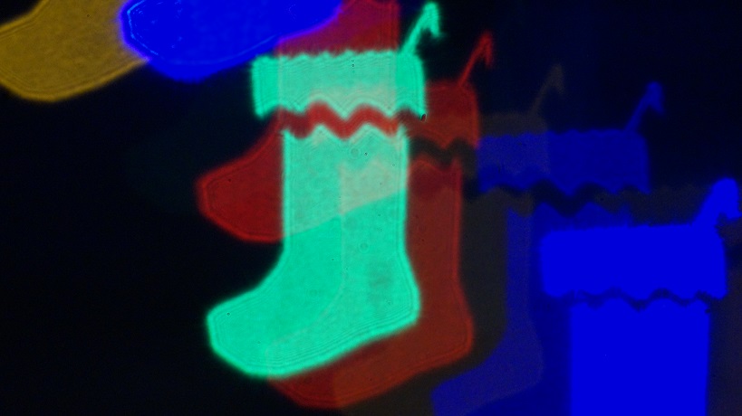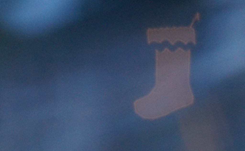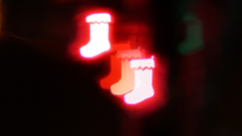 This morning I made a Christmas stocking filter and started by turning the neighbors’ security lights into stockings.