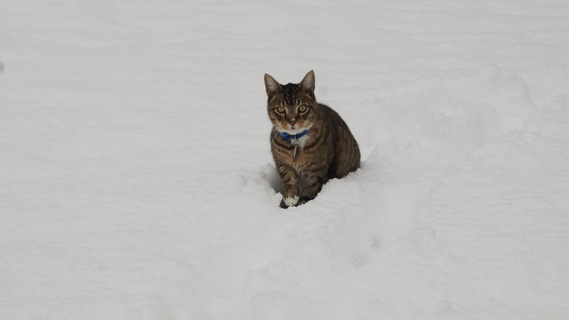 Today’s photo prompt “mittens” inspired me to get wrapped up in my snow clothes and go play in the snow. Kitty came out to guide me home.