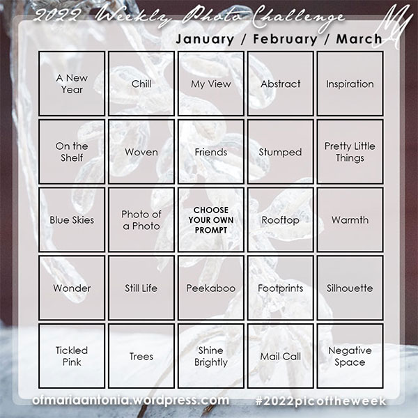 Instead of creating a new photography prompt calendar, I will use Of Maria Antonia’s 2022 Weekly Photo Challenge Bingo Card: