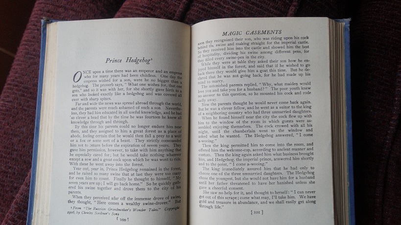 Yesterday, while looking at New Pages and planning submissions, I happened upon a call for found poetry from Heron Tree. The call is to create found poetry from works published before 1927. I hopped up and grabbed my copy of More Fairy Stories Every Child Should Know: Magic Casements edited by Kate Douglas Wiggin and Nora Archibald Smith and published in 1907. I found this lovely treasure in an antique store a long time ago and have not spent enough time with it. I was inspired by this call for submissions to dive into the book and interact with it in new ways.