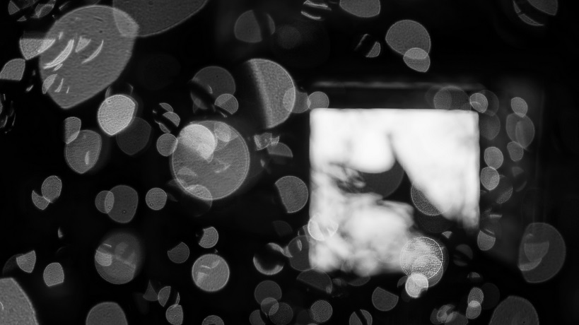 Today, I wanted to create even more depth than the mirrorworld provides, so I opened the curtains across the room, strung lights over the glass door and tried taking pictures from outside into the mirrorworld–didn’t work. However, the trees reflected in the mirrorworld looked interesting, so I focused on that. I also thought black and white represented yearning better than all the neons of yesterday.