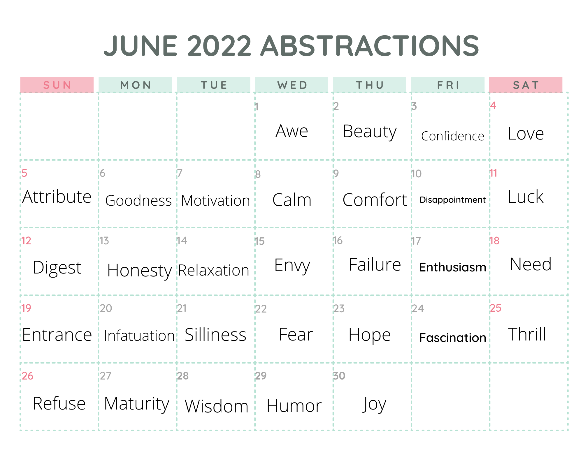 Here we are already starting June. As I mentioned yesterday, this month’s daily abstract nouns include a mix of new words and further study of previous words. And, as before, Sundays are homographs to guide visual poetry (vispo) from the images created through the week.