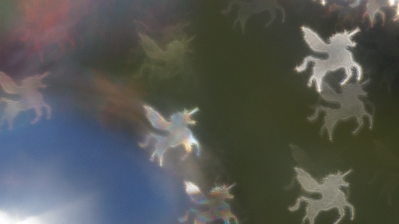 When I first started playing with bokeh shape photography, I thought of it as a way to put fantasy into the real world. I cut detailed filters of pegacorns, dragons, mermaids, aliens, and monsters and had them fly among the flowers and over rooftops. But my work has turned toward abstraction and I’m wondering how these fanciful creatures fit into my new reality (and floating studio).