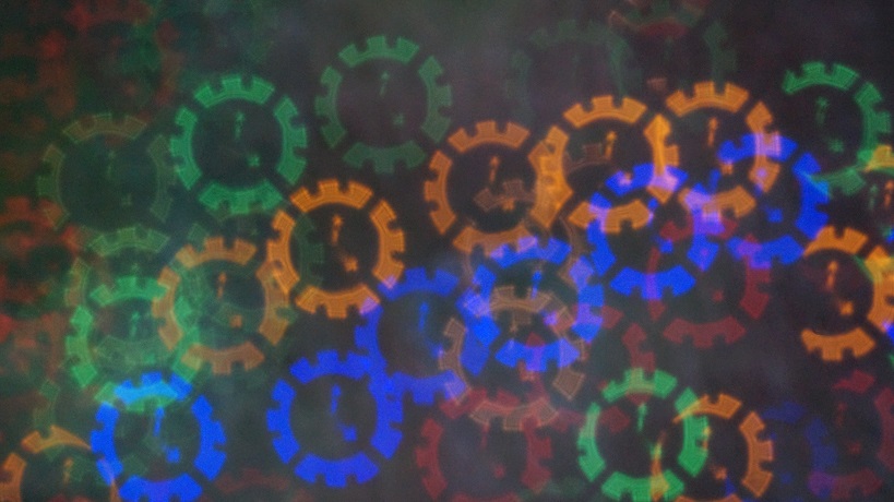 Today I’m looking at finding the impatience in patience and the patience in impatience. While thinking about what I wanted to say about patience and impatience I thought “It takes time to have patience,” so I thought of my cog-clock filter. It wasn’t raining, so I hurried outside to play with my outdoor light set-up.