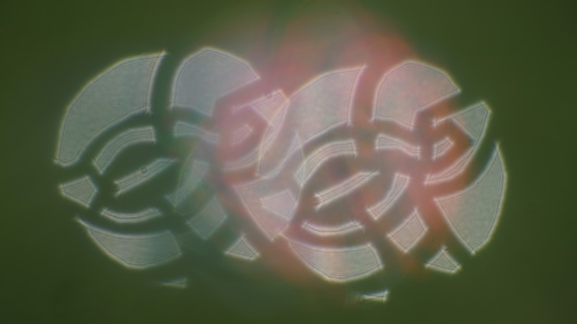 Though “Interruption” (below) is similar to “Generation” (above) it expresses a very different emotion. When I look at “Interruption” I see irritation, ugliness in the beauty; the chain of connection is broken. How is that expressed? The pastel color is overpowered by the brighter intruding shape in the foreground. The flow of the lines is interrupted creating a jagged line just left of center. The overall direction is down to the right, but also horizontal across the center.