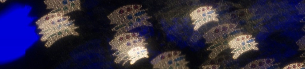To find the satisfaction in sadness and the sadness in satisfaction, I hung a blue light curtain that I bought at the new year but haven’t used much. I asked myself what shapes, lines, and points would bring me satisfaction through sadness and pain, and I thought of Morse Code. I drew Morse Code of “Sad,” “Ease,” and “Pain” on clear plastic and used them with blotch and brush shapes. I found satisfaction in the results.