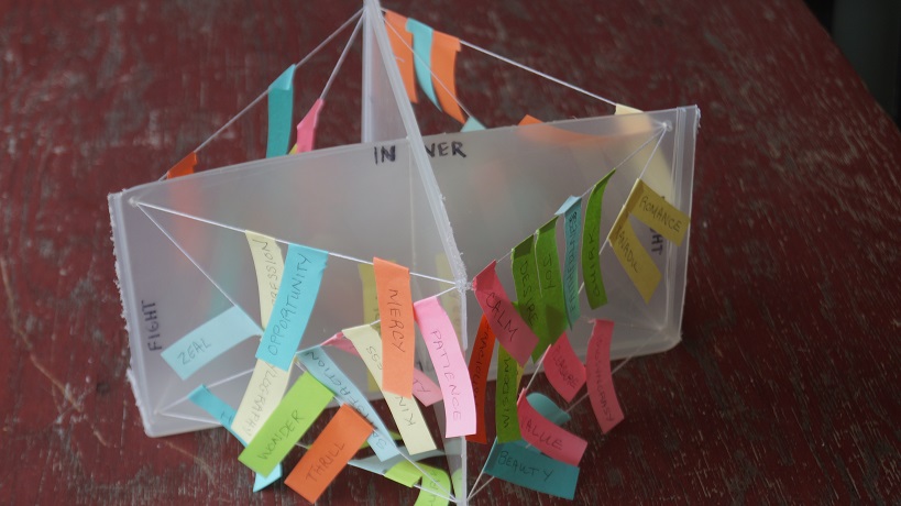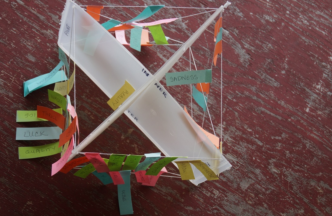This got me thinking about a third continuum of abstract nouns which is bias. During my studies of contradictory abstract nouns, I’ve come to the conclusion that contradictory abstract nouns are the same noun defined along a continuum of perceptual bias. So for today’s graph of all of the contradictory abstract nouns I explored this month, I added a third dimension, of positive or negative bias. Here’s my three-dimensional mapping of the contradictory abstract nouns along the axes of fear, control, and bias: