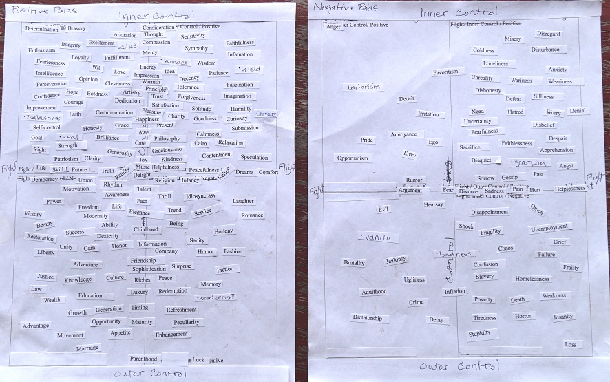 If you would like to play along, here is a blank Positive Bias chart (pdf), Negative Bias chart (pdf), and a list of abstract nouns (pdf).