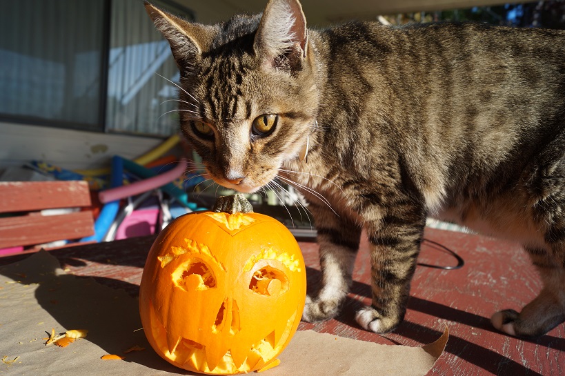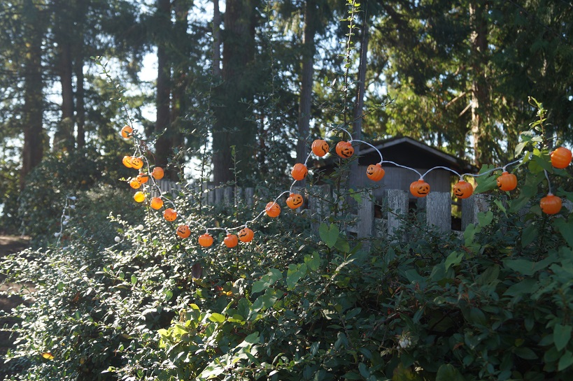 For today’s Photo Challenge prompt “Party” I spent my morning setting up all my lights outside for Halloween with my light up ghosts, and skull and hands coming out of the ground. I put the scary skulls door cover on the front door and the rubber bats in the bushes by the front door. After lunch I had a carving party with a small pumpkin. Though these pictures don’t show off the lights, since it’s a bright, sunny day, they show off my new party atmosphere. I can’t wait until the sun goes down.