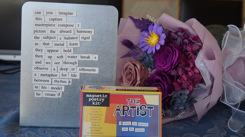 After my week went terribly wrong and I was feeling very down, I bought myself: (assoc. links) the Schylling Marblescope Kaleidoscope, and the The Artist Magnetic Poetry Kit, but in my haste to get it as soon as I could, I didn’t check the address, and sent it to my house instead of where I was staying. But now I’m home, and to my surprise no porch pirates had come my way, so I’m enjoying my new distractions and feeling a bit better.