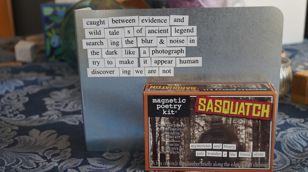 This week I talked about being unpinnable, the violence of language, and survival, so I was drawn to my Sasquatch poetry kit (assoc link).