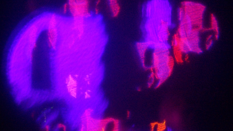 For today’s image, I used the colors that I thought of when I asked myself “What color is shame?” magenta and puce. To do this I set my fairy lights to a pinkish purple hue and draped my purple LEDs that my digital camera has trouble reading over them. Then I cut suggestive shapes out of the egg cut-out leftover from yesterday and pasted them onto iridescent clear plastic for my filter.