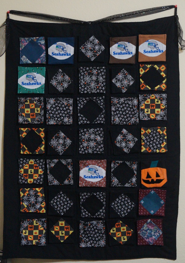 This week for my treat, I finished ten quilt pockets so I have a complete October for my calendar quilt. I’ll use it for November too.