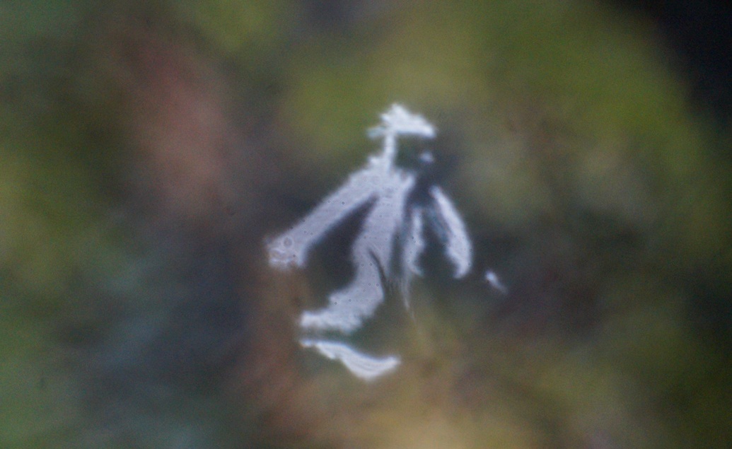 It’s a perfect drizzly Pacific Northwest day for Bigfoot to be out getting a shower au naturel, so I thought it would be fun to capture some Bigfoot in my world. I did my best to cut his furry-bigfootedness in a paper filter then took pictures of the security light across the street through the leaves.