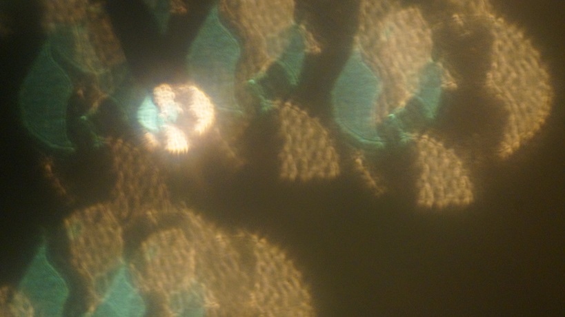 To make today’s images, using only white string-lights, I used printed transparencies of sections of my images that showed the shape both right-side-up and upside-down. I then created new images showing the filter both right-side-up and upside-down. Is it the synthesis? The negation? I’m not sure, but I had fun with my new terminology in my titles.